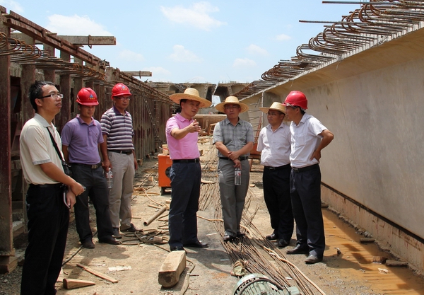5月9日,集團公司副總經理劉明洪蒞臨廣西航務工程處崇左市工業(yè)區(qū)公路№2標檢查指導工作。劉明洪副總經理重點視察了路面水泥穩(wěn)定碎石底基層試驗段的鋪設和橋梁預制場預制箱梁情況,參觀過程中聽取了項目施工情況匯報,了解目前施工存在的困難,以及下一步的施工計劃部署情況。