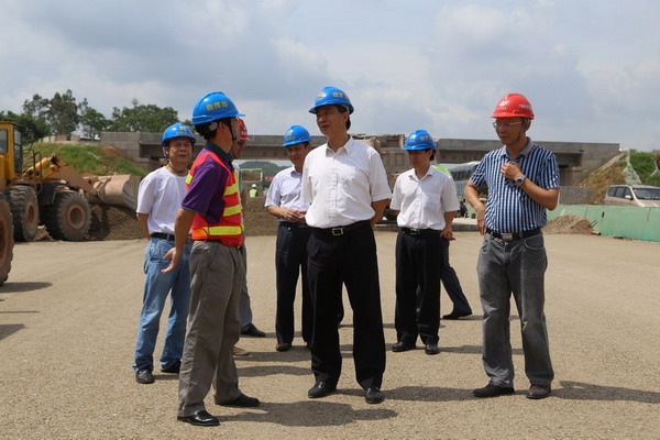 8月7日上午,自治區(qū)國資委主任、黨委書記管躍慶一行來到集團公司承建的沿海高速改擴建項目工地,在那馬北互通立交工地現場,全面了解項目投資、業(yè)績考核完成情況和一期工程及后續(xù)改擴建工程推進情況,察看沿海高速改擴建一期工程瀝青路面施工進展。管躍慶要求,要認真貫徹中央和自治區(qū)黨委、政府穩(wěn)增長、促改革、調結構、惠民生的決策部署,主動作為,扎實抓好項目管理、建設質量和安全生產,為我區(qū)經濟社會發(fā)展和實現“兩個建成”作出積極貢獻。集團公司總經理李定倫陪同調研。