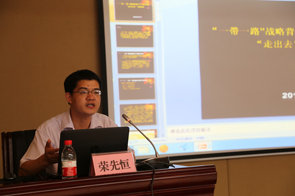 榮博士從戰(zhàn)略內(nèi)涵、歷史緣由、時代背景、框架思路等方面詳細(xì)解讀和分析了“一帶一路”戰(zhàn)略構(gòu)想,并結(jié)合廣西發(fā)展優(yōu)勢及集團(tuán)公司發(fā)展需要進(jìn)行了針對性、科學(xué)性、前瞻性地輔導(dǎo)。榮博士指出,當(dāng)前“一帶一路”戰(zhàn)略的實(shí)施,為中國企業(yè)“走出去”創(chuàng)造出了難得的歷史機(jī)遇,是中國未來10年的重大政策紅利,必將加速中國企業(yè)“走出去”步伐。新發(fā)展集團(tuán)作為廣西的國有大型企業(yè),要善于把握新的經(jīng)濟(jì)發(fā)展形勢,主動融入“一帶一路”國家戰(zhàn)略,抓住“一帶一路”建設(shè)新重點(diǎn),利用廣西的先行合作平臺優(yōu)勢,積極與其他企業(yè)合作“走出去”,以海陸互通重點(diǎn)通道工程為突破,建立靈活機(jī)制,多元化投資,在“一帶一路”大聯(lián)通網(wǎng)絡(luò)建設(shè)中有所作為。