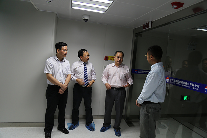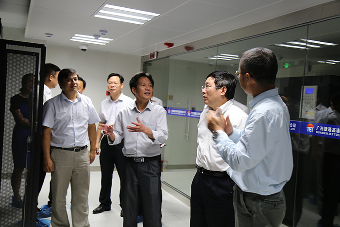 簽約儀式結束后,與會的各位領導共同參觀了我集團公司控股企業(yè)——廣西捷通公司ETC中心機房,并聽取了技術人員對中心系統(tǒng)建設情況、設備安裝使用情況、機房運轉流程、技術支持、監(jiān)控及操作、消防通道等情況的匯報。
