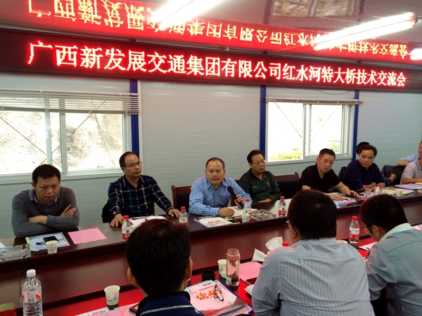 近日,由集團(tuán)公司牽頭、路橋工程集團(tuán)配合,組織開展了赴貴州省惠羅高速紅水河特大橋考察交流活動(dòng)。集團(tuán)公司唐咸秋總經(jīng)理、李德智副總經(jīng)理、覃炳賢總工程師以及集團(tuán)公司總部、路橋集團(tuán)、路建集團(tuán)、設(shè)計(jì)院、科研院及新恒通公司的相關(guān)領(lǐng)導(dǎo)、技術(shù)骨干一行共28人參加了本次考察交流活動(dòng)。
