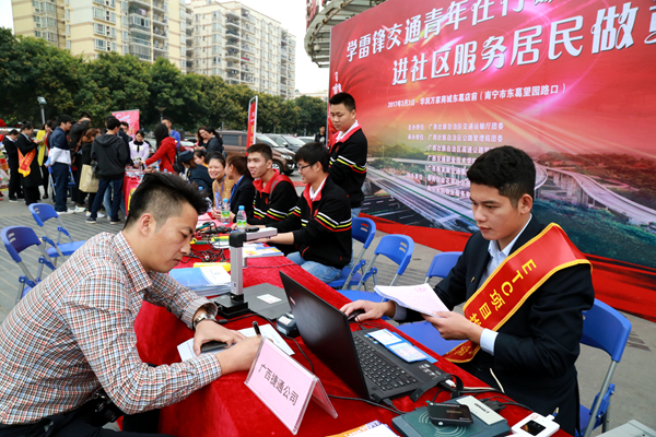 3月3日,集團公司團委組織廣西捷通公司、交通一卡通公司、票通公司廣大團員青年聯(lián)合自治區(qū)交通運輸廳團委在南寧市東葛路永凱現(xiàn)代城前廣場開展“學雷鋒交通青年在行動,進社區(qū)服務居民做貢獻”活動,為廣大社區(qū)居民送去了溫暖與實惠。