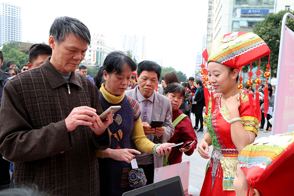 身著統(tǒng)一服裝,肩披綬帶、胸扣團徽的ETC推廣青年突擊隊員向過往的行人宣傳ETC的相關知識,耐心解答車主朋友們的疑問,并現(xiàn)場演示ETC八桂行卡的安裝過程,使廣大社區(qū)市民對ETC有了一個初步的認識。6名身著靚麗壯族服飾瞬間吸引住了往來市民的眼光,紛紛前來咨詢業(yè)務?;顒悠陂g,一卡通公司客服人員熱情地向社區(qū)居民發(fā)放了100張“桂民卡·體驗卡”,亦有不少市民被桂民卡精美的版面設計和強大的互聯(lián)互通功能所吸引,紛紛在現(xiàn)場辦理購卡及充值業(yè)務。票通公司客服人員則向社區(qū)居民推介了廣西人自己的道路客運網(wǎng)絡售票平臺——“桂客行”,耐心地向市民解析平臺功能、覆蓋范圍等,并協(xié)助市民下載“桂客行”手機APP。