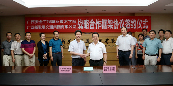 黎志逘祝賀雙方正式建立戰(zhàn)略合作伙伴關(guān)系。他說(shuō),廣西安全工程職業(yè)技術(shù)學(xué)院是經(jīng)廣西壯族自治區(qū)人民政府批準(zhǔn)成立、教育部備案的公辦全日制普通高等職業(yè)學(xué)院,隸屬?gòu)V西壯族自治區(qū)安全生產(chǎn)監(jiān)督管理局管理,是廣西唯一一所、全國(guó)第三所專門培養(yǎng)安全類高等專業(yè)技術(shù)人才的現(xiàn)代化職業(yè)學(xué)院。為了深入貫徹黨的十八屆六中全會(huì)和習(xí)近平總書(shū)記、李克強(qiáng)總理關(guān)于安全生產(chǎn)工作的重要指示批示精神,推動(dòng)企業(yè)落實(shí)安全生產(chǎn)主體責(zé)任,在全社會(huì)凝聚弘揚(yáng)安全發(fā)展理念、支持安全生產(chǎn)的共識(shí),“十三五”期間乃至更長(zhǎng)一個(gè)時(shí)期,雙方將建立互信、互補(bǔ)、互援的戰(zhàn)略合作關(guān)系,開(kāi)啟校企全面深入合作的新篇章。通過(guò)深入合作交流,促進(jìn)了廣西安全工程職業(yè)技術(shù)學(xué)院發(fā)展,提升了廣西新發(fā)展交通集團(tuán)有限公司在安全生產(chǎn)方面的實(shí)力,最終實(shí)現(xiàn)雙方的共贏。