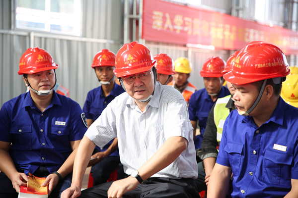 在作業(yè)一線,王躍飛主席結(jié)合企業(yè)實(shí)際情況,與現(xiàn)場員工及作業(yè)工人深入淺出的講解黨的十九大精神,讓黨的十九大精神在基層落地生根。王躍飛指出,黨的十九大對中華民族乃至每個(gè)老百姓的命運(yùn)十分重要、關(guān)鍵,會(huì)議選舉出了以習(xí)近平總書記為核心的領(lǐng)導(dǎo)集體,確定了習(xí)近平新時(shí)代中國特色社會(huì)主義思想,確定了新的發(fā)展規(guī)劃。王躍飛表示,當(dāng)前我國的奮斗目標(biāo)是建設(shè)成為富強(qiáng)、民主、文明、和諧、美麗的社會(huì)主義現(xiàn)代化強(qiáng)國,我國的社會(huì)主要矛盾也已經(jīng)轉(zhuǎn)化為人民日益增長的美好生活需要和不平衡不充分的發(fā)展之間的矛盾,我們要對這些新論斷,新理念有清醒的認(rèn)識(shí)。在宣講過程中,王躍飛用通俗易懂的語言對黨的十九大主要內(nèi)容進(jìn)行了精彩的講解。