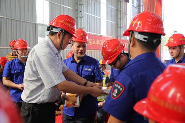 王躍飛給現(xiàn)場員工贈(zèng)送黨的十九大報(bào)告有關(guān)書籍?