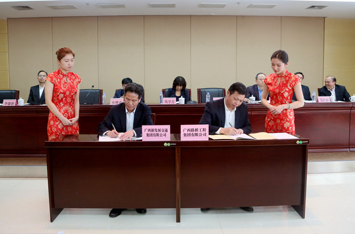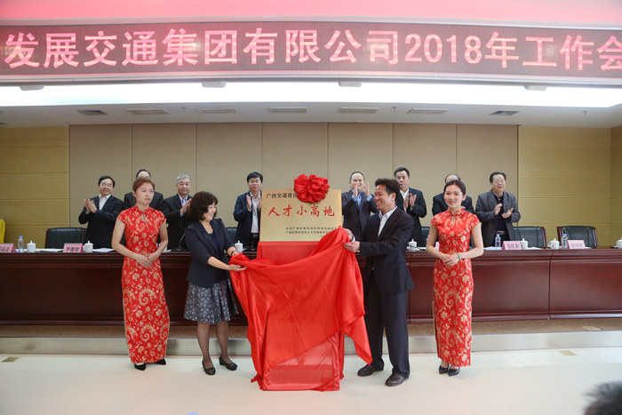 會后,自治區(qū)國資委副巡視員鞏學青與集團公司黨委書記、董事長朱堅和一同為集團公司“廣西交通建設(shè)人才小高地”揭牌。