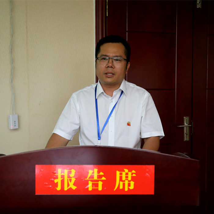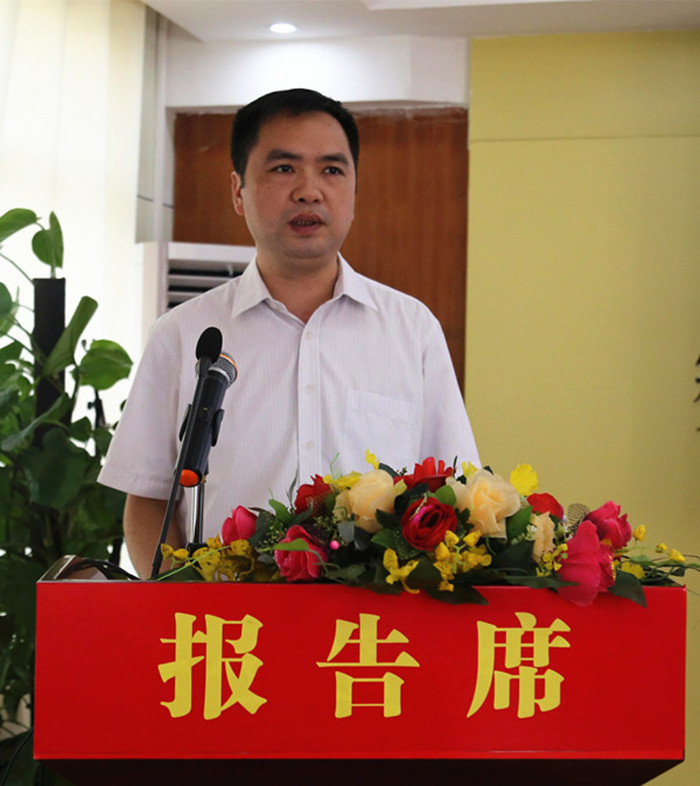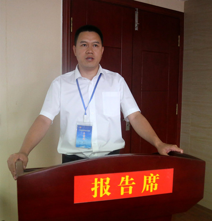 圖二:新恒通公司黨委副書記、副董事長、總經理、總工程師藍日彥在本部站為活動致辭