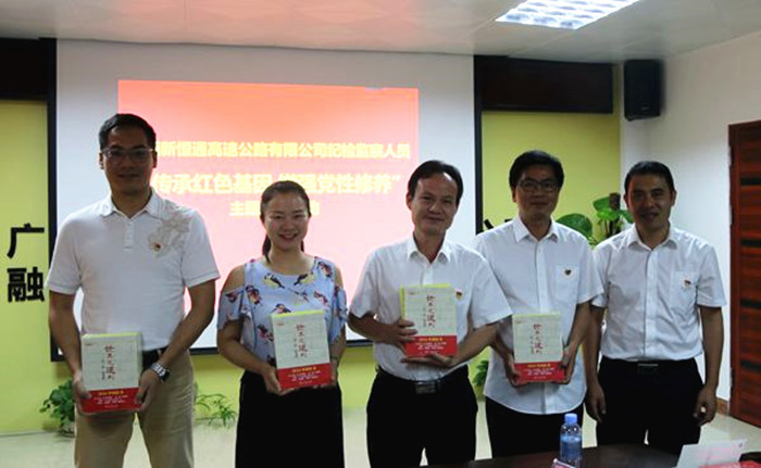 活動會上,與會人員共同學(xué)習(xí)了習(xí)近平在十九屆中央二次全會上發(fā)表的《以永遠(yuǎn)在路上的執(zhí)著把從嚴(yán)治黨引向深入》重要講話,觀看了警示教育片《尺度》,與會人員接受了一次深刻的廉政警示教育。新恒通公司紀(jì)委書記龔定強對紀(jì)檢監(jiān)察人員提出了三點要求:一是提高政治站位意識,不斷增強黨風(fēng)廉政建設(shè)和工作使命感;二是紀(jì)檢監(jiān)察干部在全面從嚴(yán)治黨中負(fù)擔(dān)著重要職責(zé),要率先做到忠誠、干凈、擔(dān)當(dāng),真正承擔(dān)起監(jiān)督執(zhí)紀(jì)問責(zé)的重任;三是要把反腐倡廉教育貫穿于工程建設(shè)全過程,用科學(xué)廉潔的制度保障工程項目規(guī)范建設(shè)。會上,龔定強還為紀(jì)檢監(jiān)察人員發(fā)放了《世界是通的》、《中國共產(chǎn)黨的九十年》等書籍,鼓勵大家仔細(xì)研讀。
