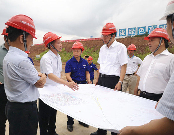 7月13日下午,自治區(qū)副主席費(fèi)志榮到賀巴高速鐘昭段同古互通調(diào)研,賀州市市長林冠,自治區(qū)工業(yè)和信息化委巡視員彭健銘、自治區(qū)交通運(yùn)輸廳副廳長王劼耘等同志隨行調(diào)研。集團(tuán)公司黨委書記、董事長朱堅(jiān)和,集團(tuán)公司副總經(jīng)理李德智,新恒通公司領(lǐng)導(dǎo)藍(lán)日彥、馮學(xué)茂等陪同。